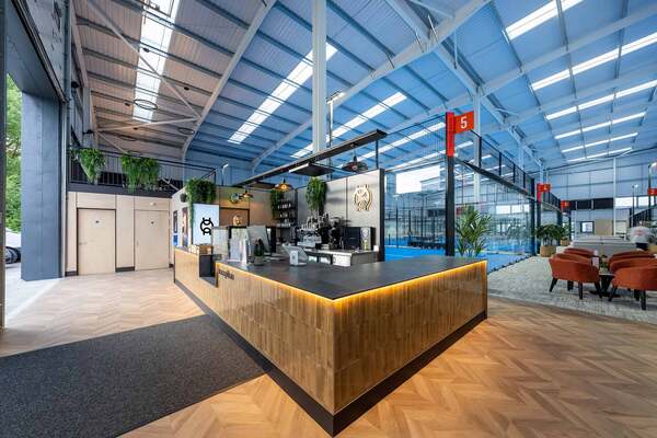 Pure Padel Stockport is indoor padel club, offering five world-class padel courts under a 10.5m high roof.The club features a modern café and bar, a mezzanine viewing gallery, spacious seating areas, and luxury showers and changing rooms.